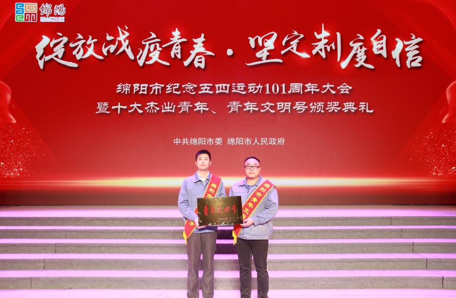 4月28日上午,“綻放戰(zhàn)疫青春·堅(jiān)定制度自信”綿陽市紀(jì)念五四運(yùn)動(dòng)101周年大會(huì)暨十大杰出青年、青年文明號(hào)頒獎(jiǎng)典禮在綿州劇院舉行。綿陽市委書記劉超,市政協(xié)主席李亞蓮,市委常委、宣傳部長、秘書長張學(xué)民,市人大常委會(huì)副主任李川萍,市政府副市長蔣麗英,市政協(xié)副主席李京平等領(lǐng)導(dǎo)出席頒獎(jiǎng)典禮。市政府副市長蔣麗英為獲得綿陽市“青年文明號(hào)”的團(tuán)體代表頒獎(jiǎng)。東材科技黨員先鋒志愿隊(duì)榮獲綿陽市“青年文明號(hào)”榮譽(yù)稱號(hào),黨員楊晨、唐建作為志愿隊(duì)代表參加了本次典禮。