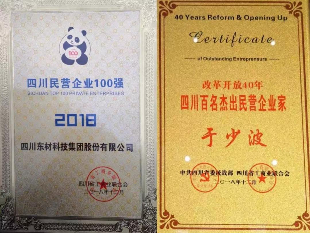 熱烈祝賀東材科技黨委書記、董事長(zhǎng)于少波榮獲“改革開(kāi)放40年四川百名杰出民營(yíng)企業(yè)家”光榮稱號(hào)